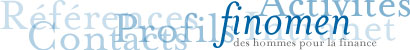 | Finomen SAS réalise des missions en informatique bancaire, reconnues par des banques de référence, d'expertise en réglementation bancaire et comptabilité financière, d'assistance à maîtrise d'ouvrage et de mise en oeuvre de progiciels bancaires. | |||